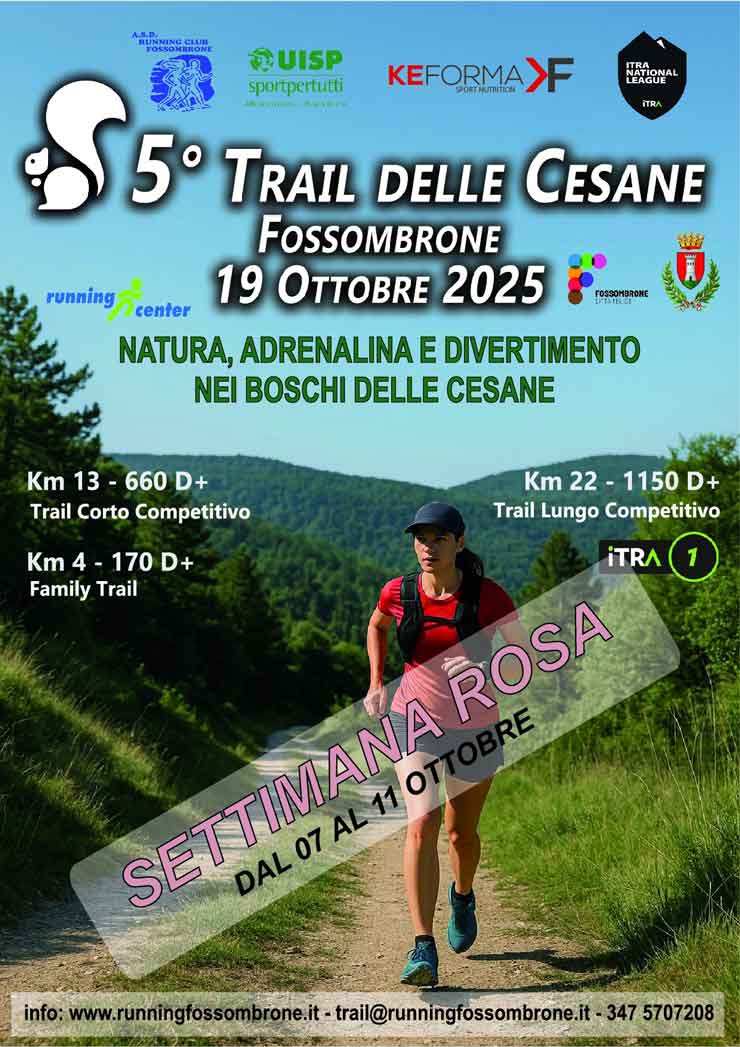 Fossombrone (PU) ● Trail Lungo 22.00 KM - 1150m D+ ● Trail Corto 13.00 KM - 660m D+ ● Camminata 4.00 KM - 450m D+